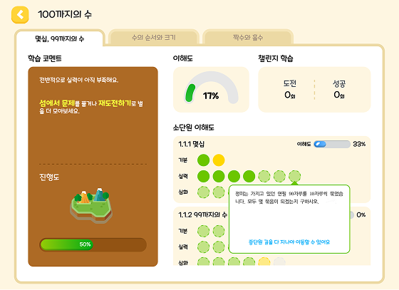 학생의 학습 이력에 따라 AI가 맞춤 학습을 제안하며