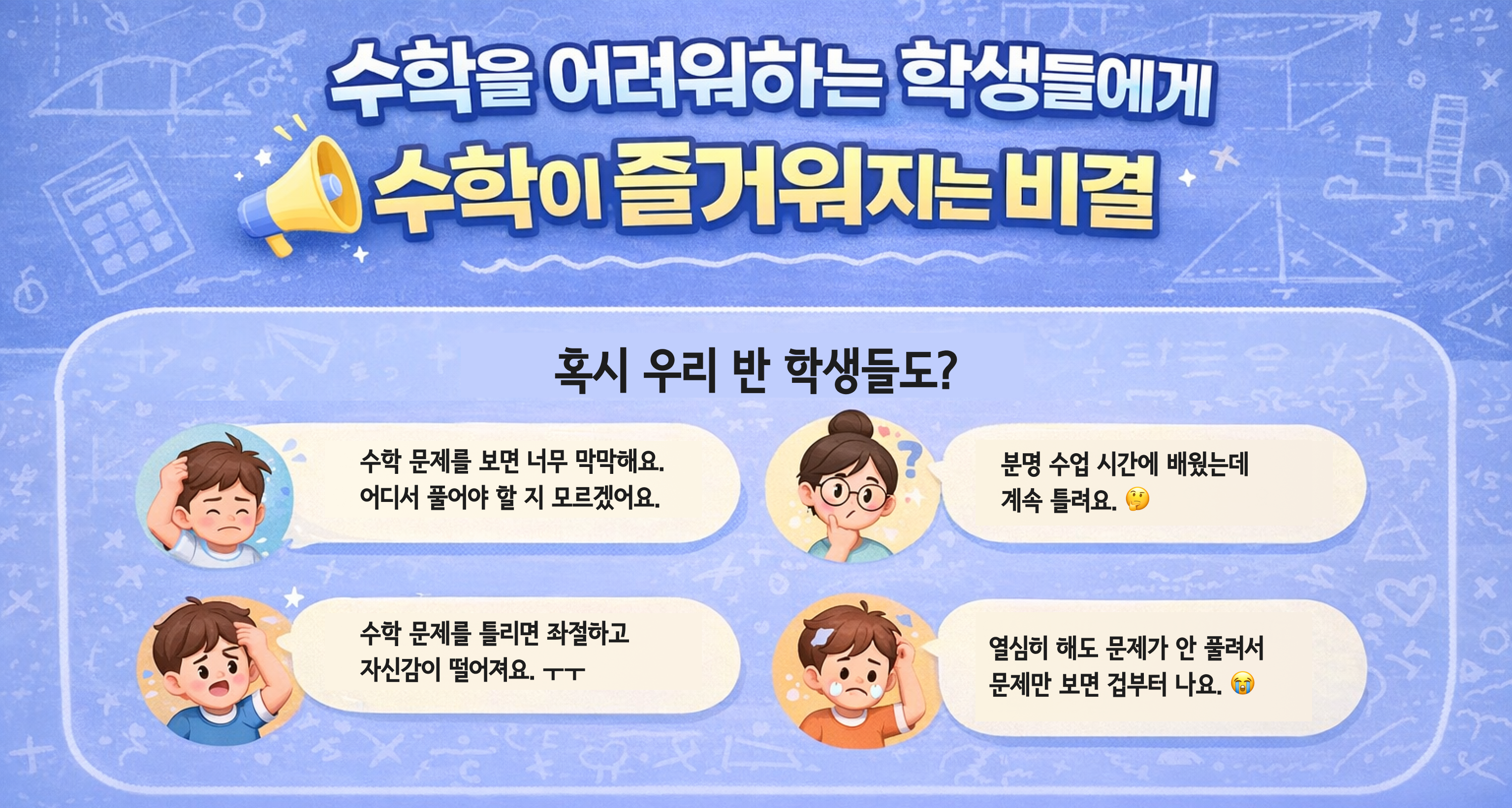λ¨κ³λ³ 보μμ ν΅ν΄ νμ΅μ μ¬λ―Έλ₯Ό λ°κ²¬νκ³ , νμ μ€μ€λ‘ λ¨Όμ μ°Ύλ μ§μ κ°λ₯ν μκΈ°μ£Όλ νμ΅ νκ²½μ μ 곡ν©λλ€. μ±μ·¨μ κΈ°μ¨μ κ²½νν νμμ μ μλμ μ§λ μμ΄λ μ€μ€λ‘ νμ΅μ λͺ°μ νλ©° κΈ°μ΄ νλ ₯μ ννν λ€μ Έλκ°λλ€.