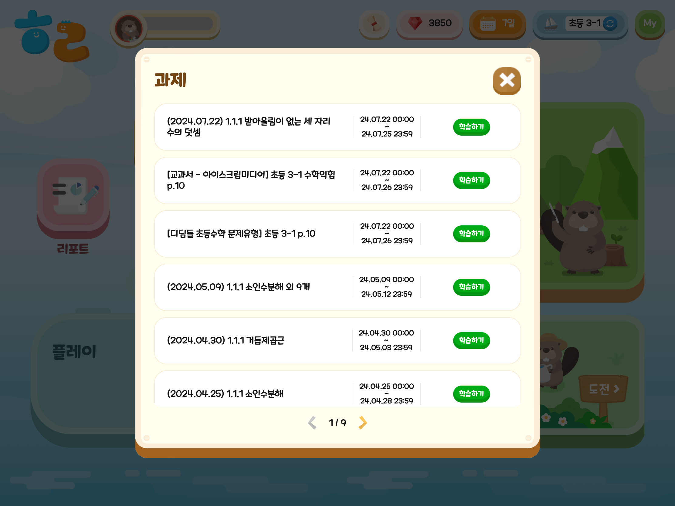 수업 진도에 따른 단원별 학습